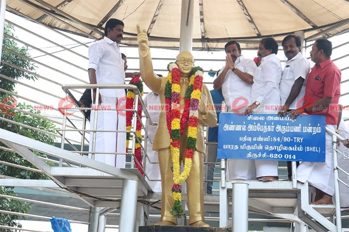 திருச்சியில் அம்பேத்கர் சிலைக்கு அமைச்சர் கே.என்.நேரு மரியாதை