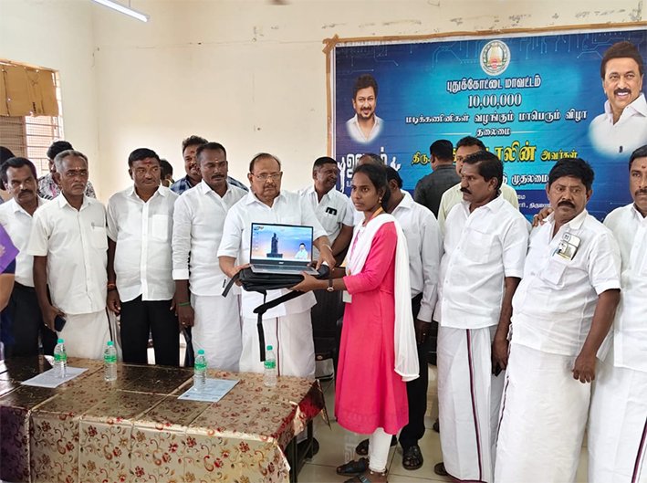 புதுகை- கல்லூரி மாணவர்களுக்கு லேப்டாப் வழங்கிய அமைச்சர் ரகுபதி