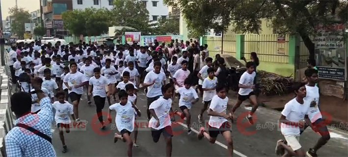 அதன் ஒரு பகுதியாக, பள்ளி–கல்லூரிகள் மற்றும் பொதுமக்கள் கூடும் இடங்களில் விழிப்புணர்வு நிகழ்ச்சிகள் நடத்தப்பட்டு வரும் நிலையில், இன்று ஆண்கள் மற்றும் பெண்கள் இருவருக்கும் தனித்தனியாக மினி மாரத்தான் போட்டி நடைபெற்றது.