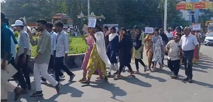 குறித்து விழிப்புணர்வு ஏற்படுத்தும் வகையில் தனியார் கல்லூரி மாணவ மாணவிகள் கலந்து கொண்ட விழிப்புணர்வு பேரணி நடைபெற்றது