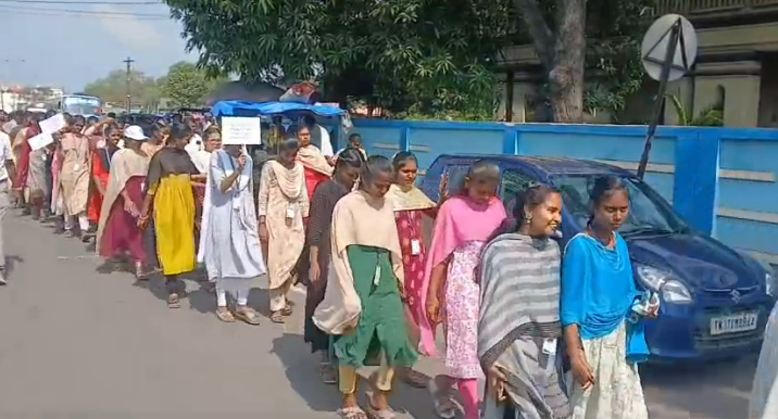 சார் ஆட்சியர் அலுவலகம் முன்பு பேரணியை நகராட்சி ஆணையாளர் குமரன் கொடியசைத்து தொடங்கி வைத்தார்.