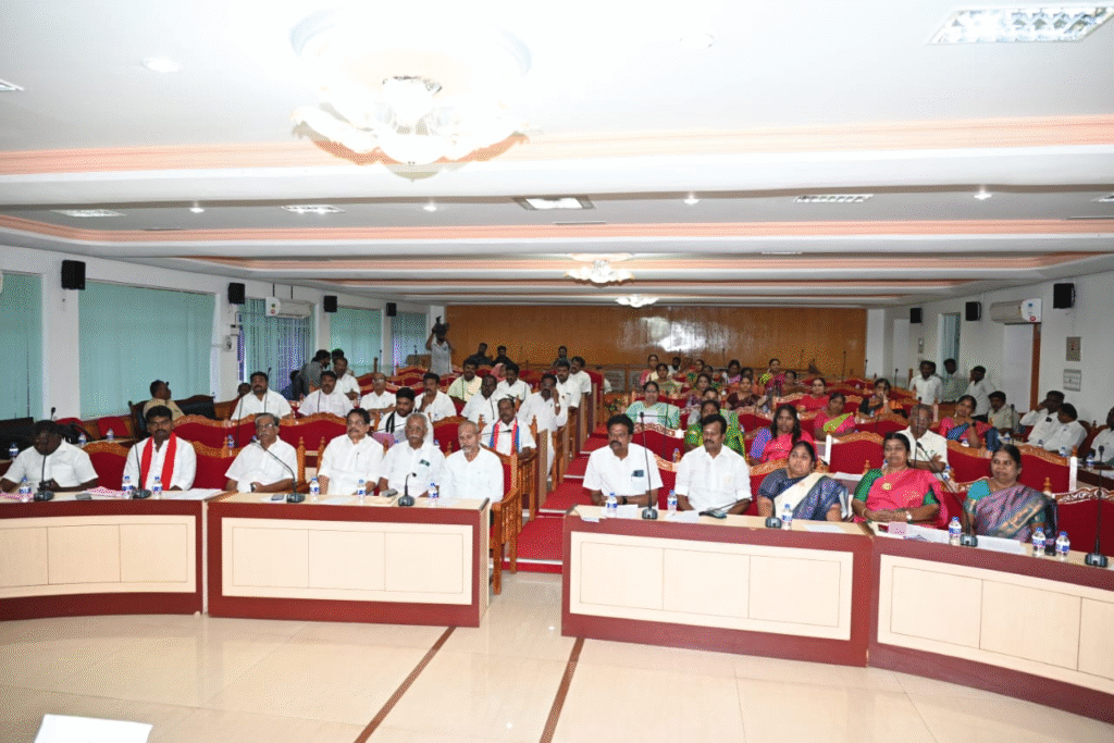 திருச்சிராப்பள்ளி மாநகராட்சி மாமன்ற சாதாரணக்கூட்டம் மேயர் மு.அன்பழகன் தலைமையில், ஆணையர் லி. மதுபாலன், துணை மேயர் திவ்யா ஆகியோர் முன்னிலையில் இன்று நடந்தது துணை ஆணையர்கள் வினோத், க.பாலு, நகரப் பொறியாளர் பி. சிவபாதம் ,மண்டலத் தலைவர்கள் ஆண்டாள் ராம்குமார் , மதிவாணன், துர்காதேவி, விஜயலட்சுமி கண்ணன், .பி. ஜெயா நிர்மலா,மாமன்ற உறுப்பினர்கள் மற்றும் ,நகர் நல அலுவலர்,செயற்பொறியாளர்கள், மாநகராட்சி உதவி ஆணையர்கள், உதவி செயற்பொறியாளார்கள், சுகாதார அலுவலர்கள் கலந்து கொண்டார்கள்.