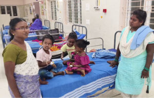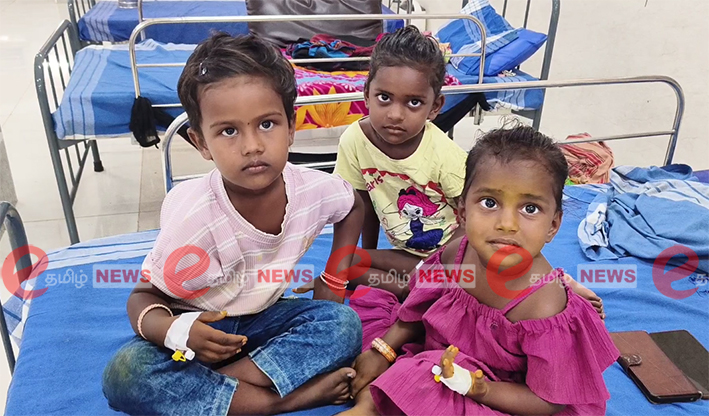 வீட்டு வாசலில் தெளிக்க வைக்கப்பட்டிருந்த சாணி பவுடரை குடித்து நான்கு குழந்தைகள் திருப்பத்தூர் அரசு மருத்துவமனையில் அனுமதி