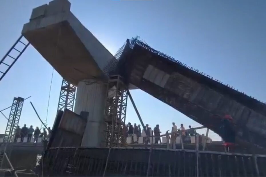 இந்நிலையில், இன்று வழக்கம்போல் பாலத்தின் கட்டுமானப் பணியில் ஊழியர்கள் ஈடுபட்டிருந்தனர். அப்போது எதிர்பாராத விதமாக பாலத்தின் இரண்டு தூண்களுக்கு இடைப்பட்ட பகுதி இடிந்து விழுந்து விபத்து ஏற்பட்டது. இந்த சம்பவத்தில் 5 ஊழியர்கள் படுகாயமடைந்தனர். அவர்கள் உடனடியாக மருத்துவமனைக்கு அழைத்து செல்லப்பட்டனர்.