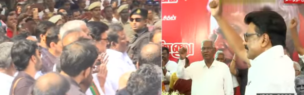 தகைசால் தமிழர், போராளி நல்லகண்ணுக்கு வீரவணக்கம் என முழக்கம் எழுப்பி மரியாதை செய்யப்பட்டது. சென்னை மருத்துவக்கல்லூரிக்கு நல்லக்கண்ணு உடல் ஒப்படைக்கப்பட்டது.