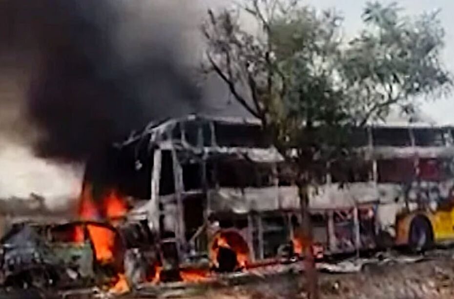 ஷாந்தாப்பூர் அருகே கார் சென்றபோது பெங்களூருவிலிருந்து குல்பர்கா நோக்கி சென்று கொண்டிருந்த தனியார் பேருந்து மீது கார் வேகமாக மோதியது. இதில் இரு வாகனங்களும் தீப்பிடித்து எரிந்து சாம்பலாயின. இதில் காரில் பயணித்த கிருஷ்ணா நாயக் (56), அவரது மனைவி ஆனந்த கலா (50), அவரது மகன் சரணப்பா (26) உட்பட 6 பேர் உயிரிழந்தனர். சரணப்பாவின் மனைவி நிசர்கா (24), மகன் சித்தார்த் (3), மகள் சசிகலா(2) ஆகிய மூவரும் மருத்துவமனைக்கு கொண்டு செல்லும் வழியில் உயிரிழந்தனர். பஸ்சில் பயணித்த 30க்கும் மேற்பட்ட பயணிகள் சிறுகாயங்களுடன் உயிர் தப்பினர். முதல்கட்ட விசாரணையில் கார் டயர் வெடித்ததில் கட்டுப்பாட்டை இழந்து பஸ் மீது மோதி விபத்து ஏற்பட்டது தெரிய வந்துள்ளது. விபத்து குறித்து வழக்குப்பதிவு செய்த போலீசார் விசாரணை நடத்தி வருகின்றனர்.
