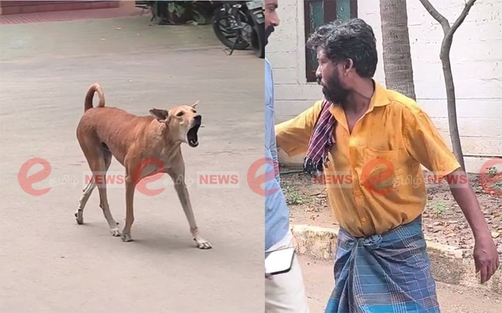 பார்த்து குரைத்துள்ளது. கோபமடைந்த மது போதை ஆசாமி நாயைப் பார்த்து உன்னை கொன்று விடுவேன் என்று திட்டிக் கொண்டிருந்தார்.