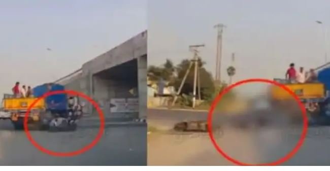3 பேருடன் அதிவேகத்தில் வந்த பைக்… லாரி மீது மோதி பள்ளி மாணவன் பலி!