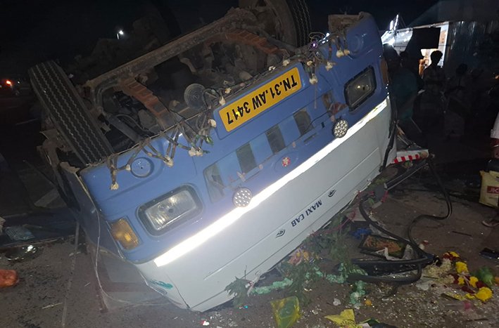 இதனால் ஓட்டுநரின் கட்டுப்பாட்டை இழந்த வேன், சாலையோரம் தலைகுப்புறக் கவிழ்ந்து விபத்துக்குள்ளானது. விபத்தில் சிக்கியவர்களின் அலறல் சத்தம் கேட்டு ஓடிவந்த அப்பகுதி மக்கள், காயமடைந்தவர்களை மீட்டு 108 ஆம்புலன்ஸ் மூலம் அரியலூர் அரசு மருத்துவக் கல்லூரி மருத்துவமனைக்கு அனுப்பி வைத்தனர். இதில் அன்பரசி, காவ்யா, சரிதா, சரஸ்வதி, மகேஸ்வரி, மாரியம்மாள், சௌமியா, ஜான்சி ராணி, செல்வி, கலைச்செல்வி உள்ளிட்ட 14 பெண் பக்தர்கள் படுகாயங்களுடன் அவசர சிகிச்சை பிரிவில் அனுமதிக்கப்பட்டுள்ளனர்.