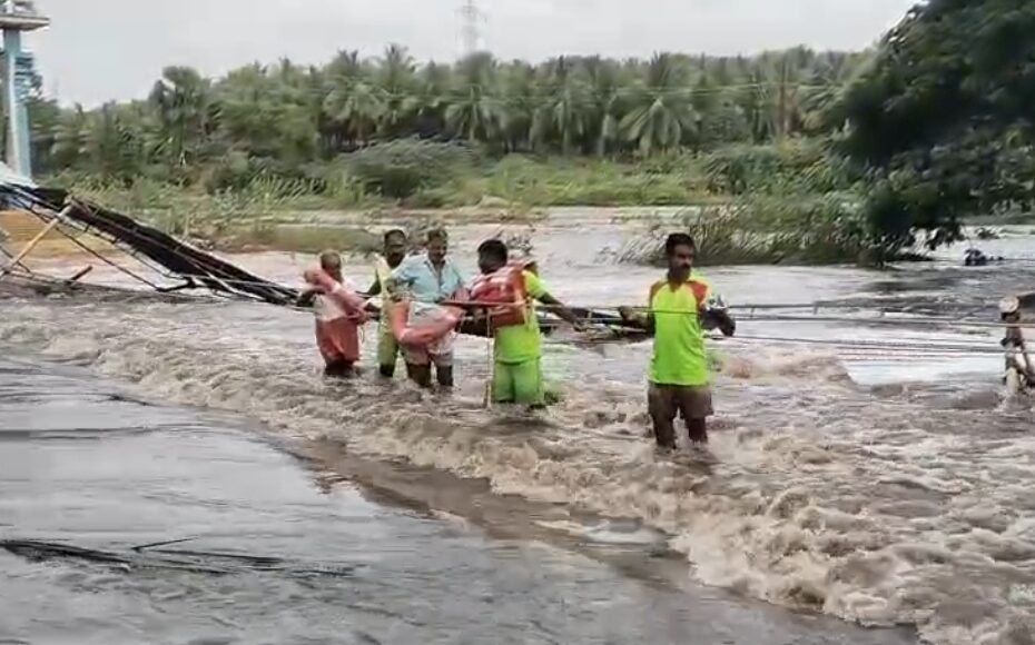கோவை, பொள்ளாச்சி அடுத்த பாலாற்றின் மையப்பகுதியில் உள்ள ஆஞ்சநேயர் கோயில் மிகவும் பிரசித்தி பெற்ற கோயில் என்பதால் இங்கு சனிக்கிழமை மற்றும் அனைத்து தினங்களிலும் ஏராளமான பக்தர்கள் வந்து சாமி தரிசனம் செய்து வருகின்றனர் இக்கோவிலுக்கு இரவு நேரத்தில் இரண்டு காவலர்கள் பணிபுரிந்து வருகின்றனர் இந்த நிலையில் நேற்று மாலை முதல் ஆனைமலை சுற்றுவட்டார பகுதிகளில் கன மழை கொட்டி தீர்த்தது இதனால் சிற்றோடைகள் ஆறுகளில் வெள்ளப்பெருக்கு ஏற்பட்டுள்ளது இந்த நிலையில் பாலாற்றிலும் வெள்ளப்பெருக்கு ஏற்பட்டு ஆஞ்சநேயர் கோவிலை வெள்ளம் சூழ்ந்ததால் கோவிலில் இரவு காவலர்களாக பணியாற்றி வரும் மகாலிங்கம் ஜெயக்குமார், ஆகியோர் வெள்ளத்தில் சிக்கி கொண்டனர் சுதாரித்துக் கொண்ட இரவு காவலர்கள் உடனடியாக பொள்ளாச்சி தீயணைப்பு நிலையத்துக்கு தகவல் கொடுத்துள்ளனர் தகவல் பேரில் விரைந்து வந்து தீயணைப்பு துறை வீரர்கள் நீண்ட நேரம் போராட்டத்துக்குப் பிறகு இருவரையும் கயிறு கட்டி கரைக்கு அழைத்து வந்தனர் இதனால் இப்பகுதியில் பரபரப்பு ஏற்பட்டது மேலும் கோவில் ஆற்றின் மையப் பகுதியில் இருப்பதால் இதுபோன்று சம்பவங்கள் அடிக்கடி நடைபெற்று வருகிறது இதனை தடுக்கும் விதமாக தமிழக அரசு அறநிலை துறை கட்டுப்பாட்டில் உள்ள இந்த கோவிலுக்கு புதியதாக மேம்பாலம் கட்டித் தர வேண்டும் என இப்பகுதி பொதுமக்கள் கோரிக்கை விடுத்துள்ளனர்.