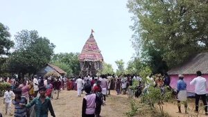 மூர்த்திகளுக்கு சிறப்பு அபிஷேக ஆராதனைகள் செய்யப்பட்டன. பின்னர், சுமார் 35 அடி உயரமும், 11 அடி அகலமும் கொண்ட கலைநயம் கொண்ட தேரில் அய்யனாரும், மாரியம்மனும் எழுந்தருளி, பக்தர்களுக்கு அருள்பாலித்தார்.இதனையடுத்து தேரோராட்டத்தை ஜெயங்கொண்டம் எம் எல் ஏ கண்ணன் தொடங்கி வைத்தார். ஆயிரக்கணக்கான பக்தர்கள் திருத்தேரை மனம் உருகி வடம் பிடித்து இழுத்துச் சென்றனர். முந்திரி காட்டுக்குள் மண் தரையில் பக்தர்களின் மனம் குளிர் அய்யனாரும் மாரியம்மன் உருண்டோடி வந்தனர். மூத்தோர்கள் வழிபட்ட அய்யனார் தங்களது குலதெய்வமாக விளங்கி வருகையில், அவர் சென்ற பாதையிலேயே தேரோட்டம் நடைபெற வேண்டும் என்பதற்காக தற்பொழுது முந்திரிக்காட்டுக்குள் அவரவர்கள் முந்திரி மரங்களை வெட்டி தேரோட்டத்திற்கு வழி வகுத்து தருகின்றனர். வழி வழியாக வரும் பாதையில் முந்திரிக் காட்டுக்குள் அசைந்தாடும் வரும் தேரை பார்க்கையில் தமிழர்களின் பாரம்பரியமும் அவர்களின் தெய்வீக பத்தியும் எக்காலத்திலும் எவராலும் மறைக்கவும் முடியாது மறைக்கவும் மறையாது என்பதை பறைசாற்றுவதாக அமைகின்றது.