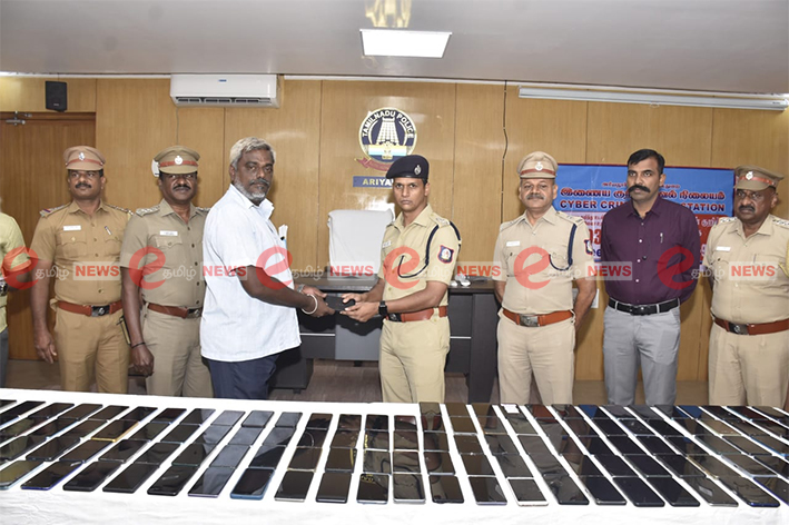 உரிமையாளர்களிடம் ஒப்படைத்தார். மேலும் பொதுமக்கள் செல்போன் தொலைந்து விட்டால் உடனடியாக அருகில் உள்ள காவல் நிலையத்தில் புகார் அளிக்கவும். இணைய குற்றங்கள் க குறித்த புகார்களை இலவச உதவி எண் 1930 அழைக்கவும்,www.cybercrime.com.gov.in என்ற இணையத்தில் பதிவிடவும் அரியலூர் மாவட்ட இணைய குற்ற காவல் நிலையம் சார்பாக கேட்டுக் கொள்ளப்படுகிறது.