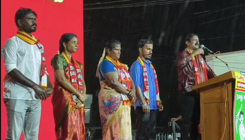 அரியலூர் பேருந்து நிலையம் அருகே நாம் தமிழர் கட்சியின் தலைமை ஒருங்கிணைப்பாளர் சீமான் அக்கட்சியின் அரியலூர், ஜெயங்கொண்டம், குன்னம், பெரம்பலூர் தொகுதி வேட்பாளர்களை