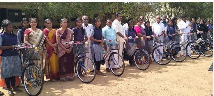 தஞ்சை அரசு பள்ளி மாணவிகளுக்கு இலவச சைக்கிள் வழங்கல்