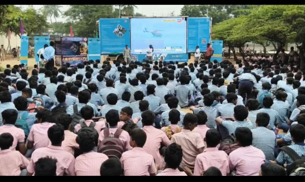 இந்திய விமானப்படை அதிகாரிகள் கலந்து கொண்டு இந்திய விமானப்படையில் உள்ள உயர்கல்வி மற்றும் வேலைவாய்ப்பு, ஆள் சேர்ப்பு குறித்த தகவல்களை பகிர்ந்து கொண்டனர். மேலும் ஒரு வாகனத்தில் எல்.இ.டி திரையின் மூலம் தேசிய விமானப்படை சாதனைகளையும், சாதித்த இந்திய