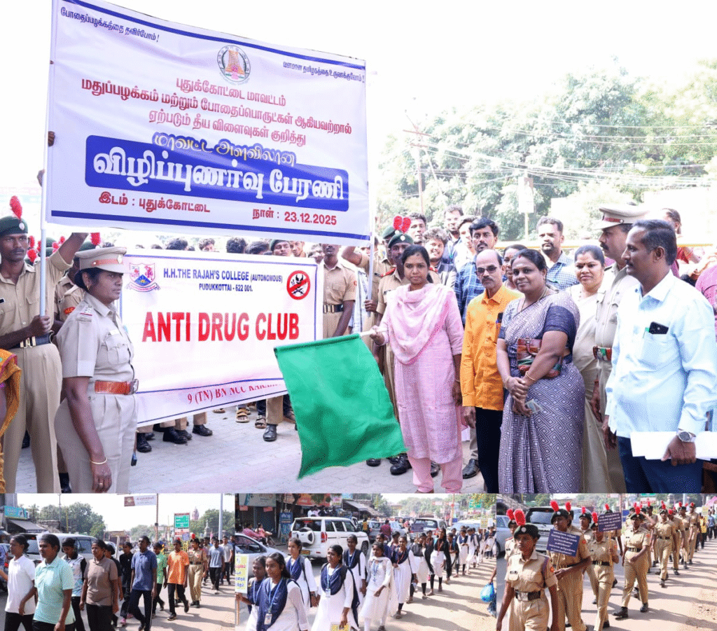 புதுக்கோட்டை மாநகராட்சி பழைய பேருந்து நிலையத்தில் மாவட்ட நிர்வாகம் மற்றும் மதுவிலக்கு ஆயத்தீர்வைத்துறை ஆகியவை சார்பில் மதுப்பழக்கம் மற்றும் போதைப் பொருட்கள்