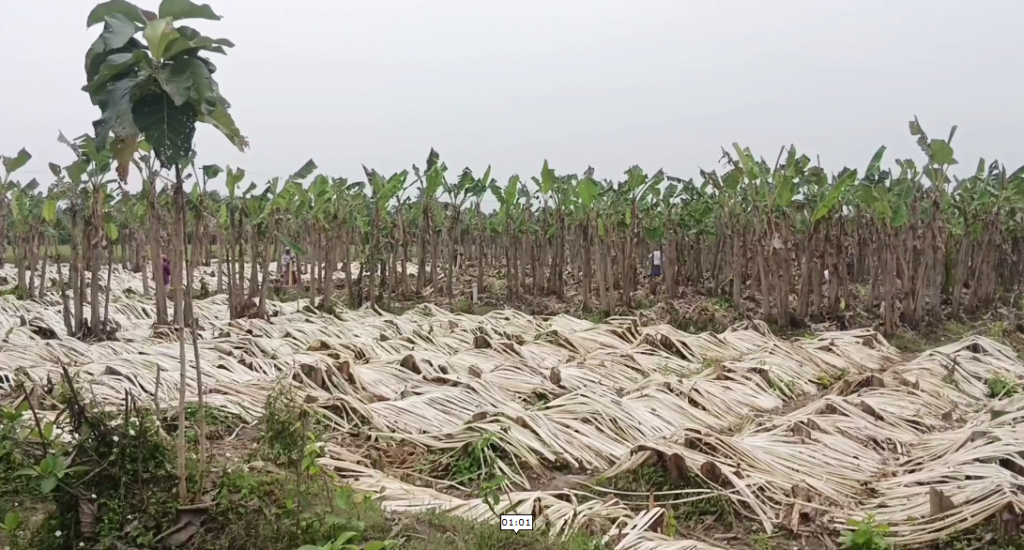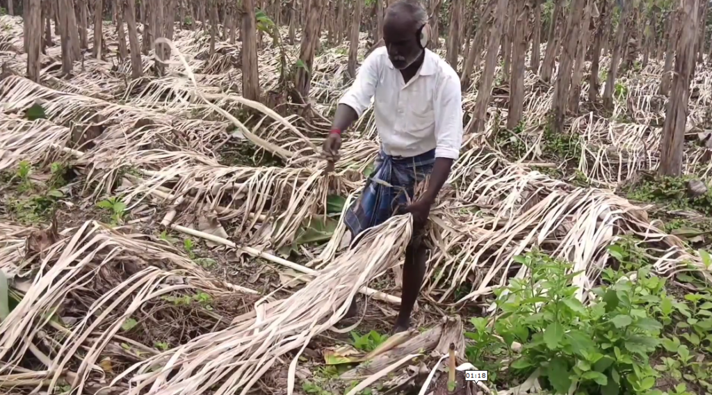 காலநிலை மாற்றத்தால் அவ்வப்போது மழை குறுக்கிடுவதால் நஷ்டத்தை சந்திப்பதாக வேதனை தெரிவிக்கும் வாழை நார் பிரித்தெடுக்கும் தொழிலாளர்கள்..