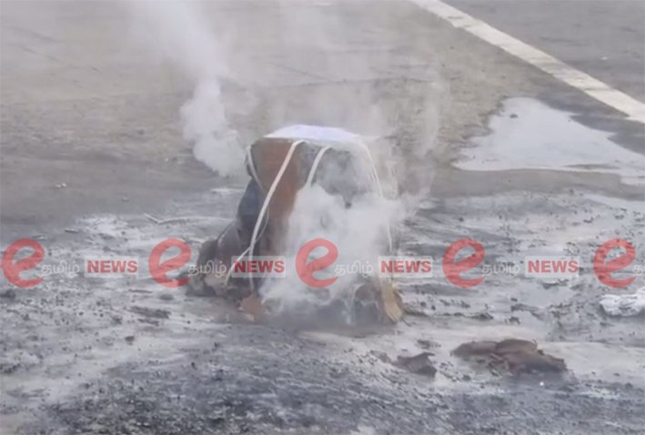 அலுவலகத்திலிருந்து வெளியே எடுத்துச் சென்றனர். சிறிது நேரத்தில் அந்த பெட்டி தீப்பற்றி எரியத் தொடங்கியது. உடனே தண்ணீர் ஊற்றி தீயை அணைத்தனர்.