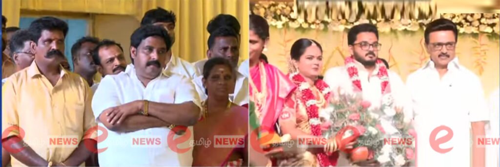 திருச்சி சோமரசம்பேட்டையில், ஸ்ரீரங்கம் எம்எல்ஏ பழனியாண்டி இல்ல திருமண விழாவில் முதல்வர் ஸ்டாலின் பங்கேற்றார். எம்எல்ஏ பழனியாண்டியின் இளையமகன் திருமண விழாவில் மணமக்களை வாழ்த்தினார்.