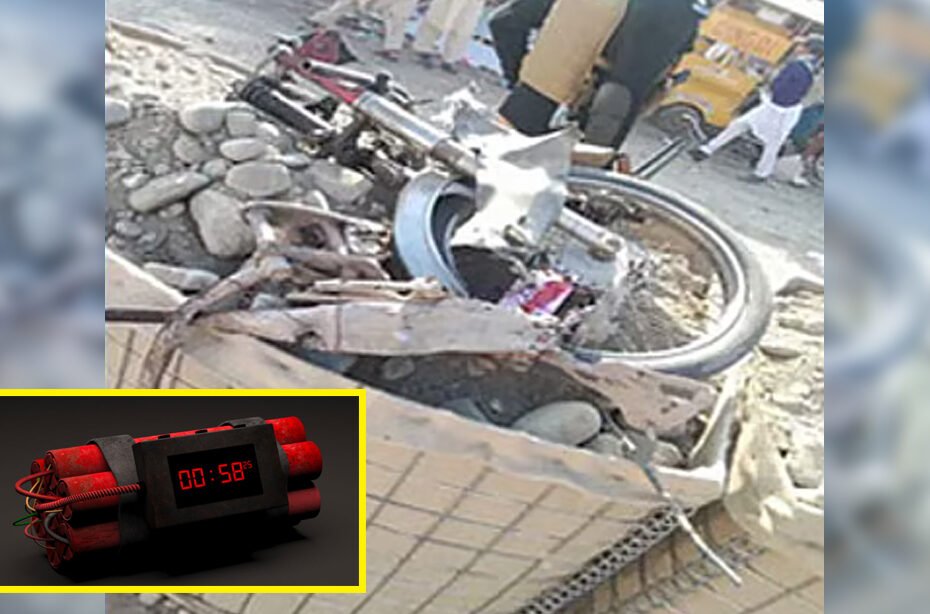 பாகிஸ்தானின் கைபர் பக்துன்குவா மாகாணத்தின் பன்னு மாவட்டத்தில் மிர்யான் காவல் நிலையம் அருகே மோட்டார் சைக்கிள் நிறுத்தி வைக்கப்பட்டு இருந்தது.