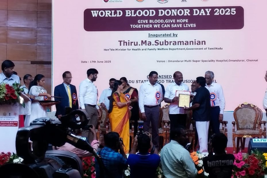 172 முறை ரத்த தானம் செய்த புதுகை கண்ணன்- அமைச்சர் மா. சு. பாராட்டு