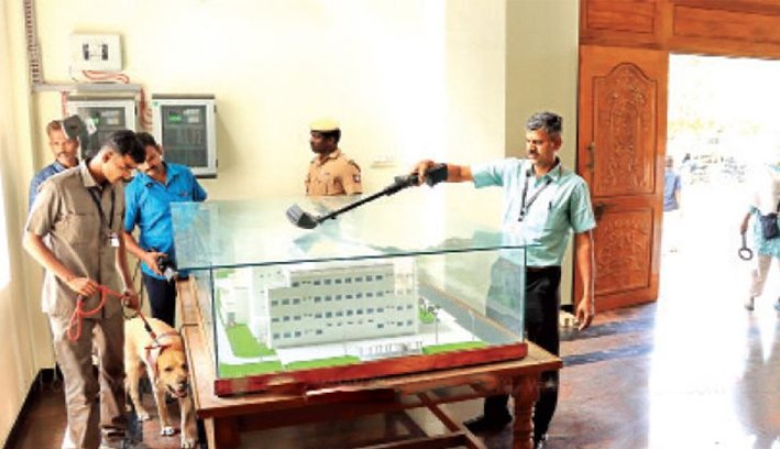 மதுரை கலெக்டர் அலுவலகத்திற்கு நேற்று வந்த வெடிகுண்டு மிரட்டலை தொடர்ந்து, மோப்ப நாய் உதவியுடன் பல்வேறு பகுதிகளிலும் தீவிர சோதனை நடத்தப்பட்டது.