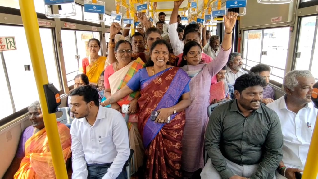 கோவையில் நடைபெற்ற நிகழ்ச்சியில் உக்கடம் பேருந்து நிலையத்தில் பேருந்து சேவையை துவக்கி வைத்த மாவட்ட ஆட்சியர், மற்றும் மாநகராட்சி ஆணையாளர் பேருந்தில் பயணம் செய்து பயணிகளிடம் கலந்துரையாடினர்.