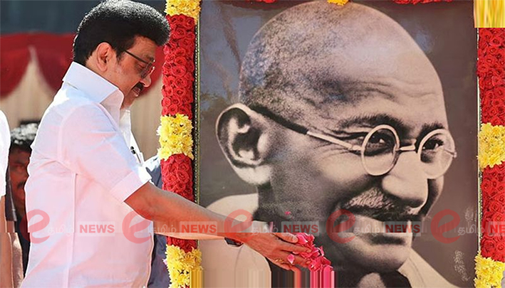 சென்னை எழும்பூரில் உள்ள அரசு அருங்காட்சியகத்தில் மகாத்மா காந்தி படத்திற்கு முதல்வர் மு.க.ஸ்டாலின் மலர் தூவி மரியாதை செலுத்தினார். காந்தியின் 157வது பிறந்தநாளையொட்டி அவரது உருவப்படத்திற்கு முதல்வர் மு.க.ஸ்டாலின் மலர்தூவி மரியாதை செய்தார்.
