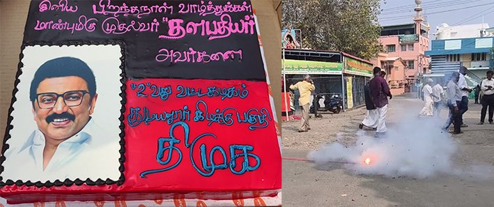 இந்நிகழ்ச்சியில் பட்டாசு வெடித்து கொண்டாட்டத்தில் ஈடுபட்டனர். தொடர்ந்து மு க ஸ்டாலின் உருவம் பொறித்த கேக் வெட்டி அதனை குழந்தைகளுக்கும், நிர்வாகிகளுக்கு ஊட்டினர். மேலும் பொதுமக்களுக்கும் வழங்கினர். இந்நிகழ்ச்சியில் மாவட்ட அணி நிர்வாகிகள், பகுதி கழக