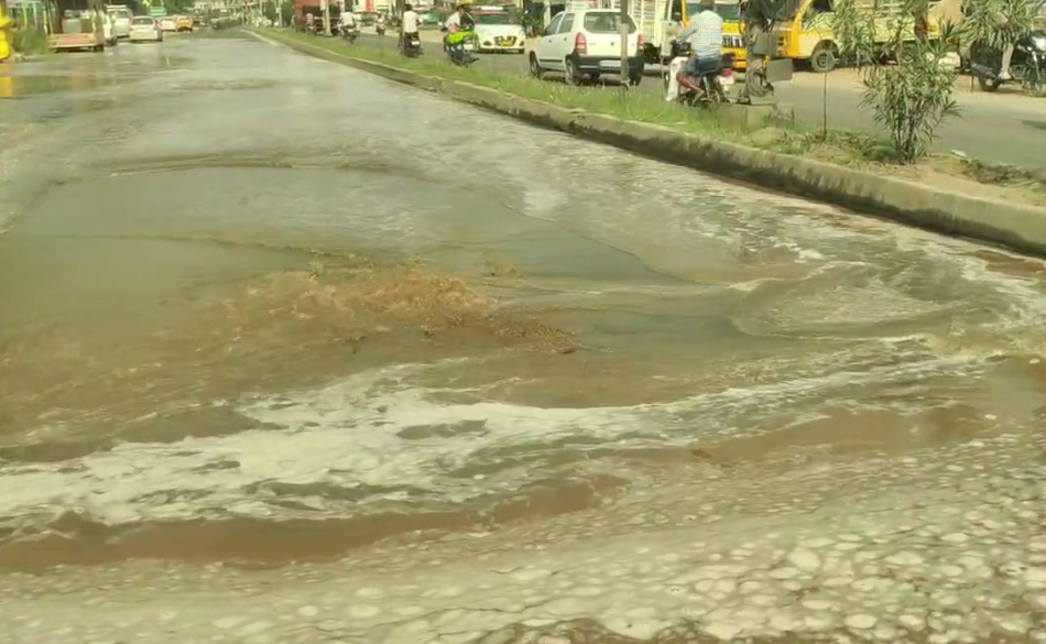 குழாய் உடைப்பை ஏற்பட்ட இடத்தில் சாலையில் பள்ளம் ஏற்பட்டதுடன் தண்ணீர் சுமார் 2கிலோ மீட்டர் தொலைவிற்கு சாலையில் பெருக்கெடுத்து ஓடியது இதனால் அந்த சாலை வழியாக சென்ற