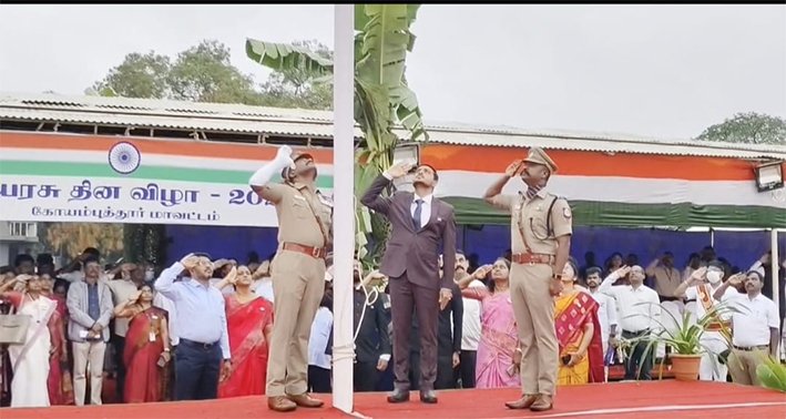 அதன் ஒரு பகுதியாக கோவை மாவட்டத்தில் வஉசி மைதானத்தில் மாவட்ட ஆட்சியர் பவன்குமார் தேசிய கொடியை பறக்கவிட்டு மரியாதை செலுத்தினார்.அதனை தொடர்ந்து அலங்கார ஊர்தியில் சென்று காவல்துறை அணிவகுப்பை பார்வையிட்டு குழந்தைகளுடன் இணைந்து மூவண்ண பலூன்களை பறக்கவிட்டார்.பின்னர் காவல் துறை அணிவகுப்பு மரியாதை ஏற்று கொண்டார்.