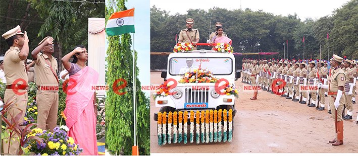 மாவட்ட ஆட்சியர் மு.அருணா தேசியக் கொடியினை ஏற்றி வைத்து மரியாதை செலுத்தினார்கள்.