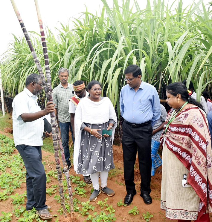 அரியலூர் மாவட்டம், தா.பழூர் ஊராட்சி ஒன்றியம், உல்லியக்குடி கிராமத்தில் பொங்கல் பரிசு தொகுப்பில் வழங்க உள்ள கரும்பு சாகுபடி செய்யப்பட்டுள்ள கரும்பு தோட்டத்தினை மாவட்ட ஆட்சித்தலைவர் பொ.இரத்தினசாமி இன்று (03.01.2026) நேரில் பார்வையிட்டு, ஆய்வு செய்தார்.