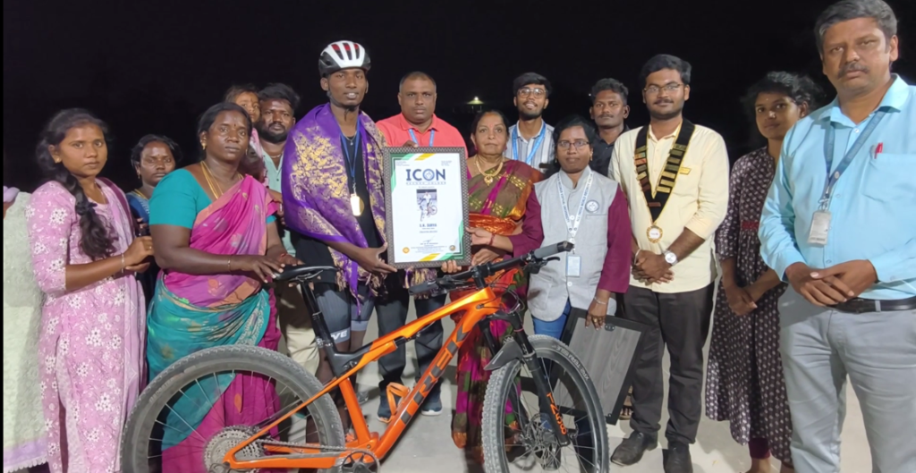 போதைப் பொருள் இல்லா சமுதாயத்தை உருவாக்கும் நோக்கில் 8 வடிவத்தில் 16 மணி 40 நிமிடங்கள் சைக்கிள் ஓட்டி உலகசாதனை புதுச்சேரி ஆல் இந்தியா புக் ஆப் ரெக்கார்ட்ஸ் நிறுவனம் அங்கீகாரம்.