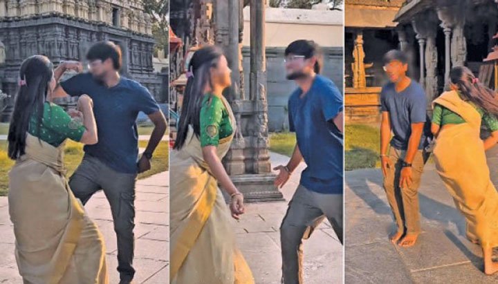 வேலூர் கோட்டையில் உள்ள ஜலகண்டேஸ்வரர் கோயிலில் விதிமுறைகளை மீறி சினிமா பாடலுக்கு ஏற்றபடி ஒரு ஜோடி நடனமாடி அதை வீடியோ எடுத்து சமூக வலைதளத்தில் வெளியிட்டுள்ளது. வேலூரில் வரலாற்று சிறப்புமிக்க கோட்டையில் ஜலகண்டேஸ்வரர் கோயில் உள்ளது. இங்கு தினந்தோறும் உள்ளூர், வெளியூர் மற்றும் வெளிமாநில, வெளிநாட்டு பக்தர்கள் அதிகளவில் வந்து சுவாமி தரிசனம் செய்கின்றனர். இந்நிலையில் இக்கோயில் வளாகத்தில் ஒரு வாலிபர் தனது தோழிடன் சினிமா பாடலுக்கு டான்ஸ் ஆடியுள்ளார்.