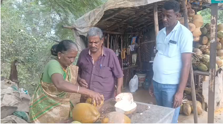 கோவை, பொள்ளாச்சி அடுத்தஆழியார் அறிவு திருக்கோயில் அருகே அம்பிகா ஜெகநாதன் தம்பதியினர் இளநீர் வைத்து வியாபாரம் செய்து வருகிறார்.தினமும் இளநீர் வெட்டி வியாபாரம் செய்வதை வைத்து வாழ்க்கை நடத்தி வருகின்றனர்