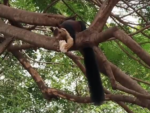 மலபார் அணிலும் காலை மாலை நேரத்தில் வனப்பகுதியில் இருந்து வெளியேறி மரத்திற்கு மரம் தாவி வந்து இளநீரில் உள்ள தேங்காயை மட்டும் வாங்கி சாப்பிட்டுவிட்டு செல்வதை வாடிக்கையாக வைத்துள்ளது. இந்த சம்பவம் இப்பகுதி மக்களிடையே நெகிழ்ச்சியை ஏற்படுத்தியுள்ளது.