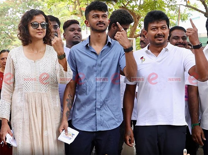 தமிழகத்தில் நடைபெற்று வரும் தேர்தல் வாக்குப் பதிவில், தமிழக துணை முதலமைச்சர் உதயநிதி ஸ்டாலின் அவர்கள் தனது ஜனநாயகக் கடமையை ஆற்றினார்.