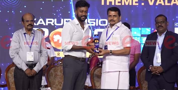 நிகழ்ச்சியில் முன்னாள் அமைச்சர் வி.செந்தில்பாலாஜி எம்எல்ஏ பங்கேற்று விருதுகளை வழங்கி பேசுகையில்: திராவிட மாடல் முதல்வர் தமிழ்நாடு மட்டுமின்றி இந்தியா, உலக அளவில் தொழில் முனைவோர்களை சந்தித்து ஏராளமான முதலீடுகளை திரட்டி 34 லட்சம் பேருக்கு வேலைவாய்ப்புகளை ஏற்படுத்தியுள்ளார்.