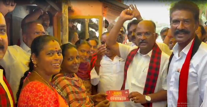 பொள்ளாச்சியில் பொதுமக்களுக்கு 8000 ரூபாய் மாதிரி டோக்கன் கொடுத்து வாக்கு சேகரித்த திமுக வேட்பாளர்