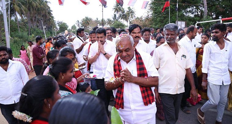 இந்நிலையில், கரூர் நெரூர் பகுதியில் உள்ள கிராமங்களுக்கு நேரடியாக சென்று பொதுமக்களை சந்தித்து வாக்கு சேகரித்து வருகிறார் அப்போது கூட்டணி கட்சி நிர்வாகிகள் மற்றும் உள்ளூர் திமுக நிர்வாகிகள் பலர் உடனிருந்தனர்.