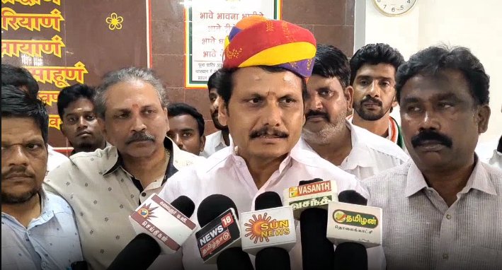 செந்தில் பாலாஜி பெயரிலேயே தவெக வேட்பாளர் ஒருவர் களமிறங்குவது தொடர்பான கேள்விக்கு அதனால் ஒரு குழப்பமும் வராது, என்னுடைய செந்தில்பாலாஜி என்ற பெயரிலேயே வேட்பாளர்கள் நின்றாலும் குழப்பங்கள் வராது எங்கள் சின்னம் தெளிவாக உள்ளது மக்கள் எங்களுக்கு முழு ஆதரவு தருவதற்கு தயாராக உள்ளார்கள் 4ம் தேதி வாக்கு எண்ணிக்கை என்பது மக்கள் யாருக்கு ஆதரவு அளித்துள்ளார்கள் என்றும் மக்களின் மனநிலையையும் பார்க்கலாம் என்றார்.