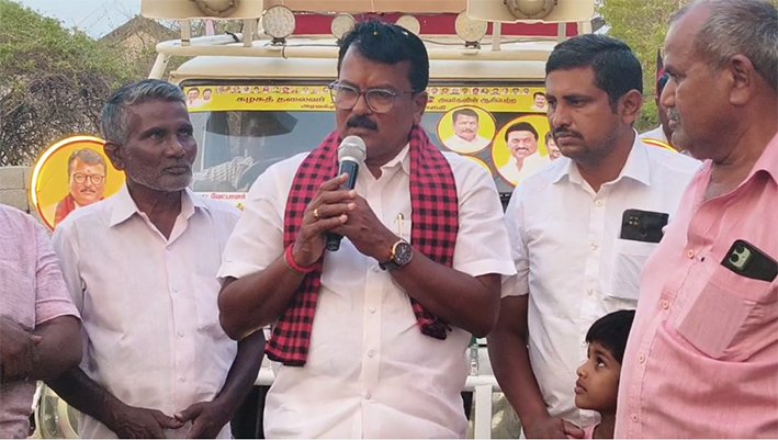 கரூர் மாவட்டம், அரவக்குறிச்சி சட்டமன்ற தொகுதியில், கடந்த 2021ஆம் ஆண்டு திமுக சார்பில் போட்டியிட்டு வெற்றி பெற்ற இளங்கோ, மீண்டும் இரண்டாவது முறையாக வேட்பாளராக போட்டியிடுகிறார். தேர்தலை முன்னிட்டு நாள்தோறும் பொதுமக்களை சந்தித்து உதயசூரியன் சின்னத்திற்கு வாக்கு சேகரித்து வருகிறார். இந்நிலையில், இன்று அரவக்குறிச்சி தொகுதிக்குட்பட்ட