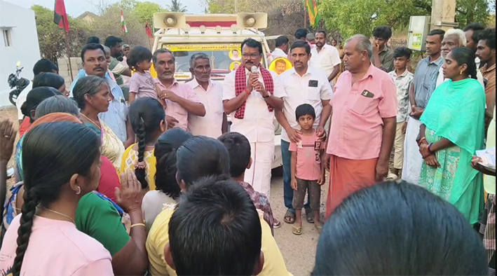 10-ஆண்டு காலம் கவுன்சிலராக பணியாற்றிய சொந்த கிராமத்திற்கு சென்று உதயசூரியன் சின்னத்தில் வாக்கு சேகரித்த அரவக்குறிச்சி திமுக வேட்பாளர் மொஞ்சனூர் இளங்கோ.