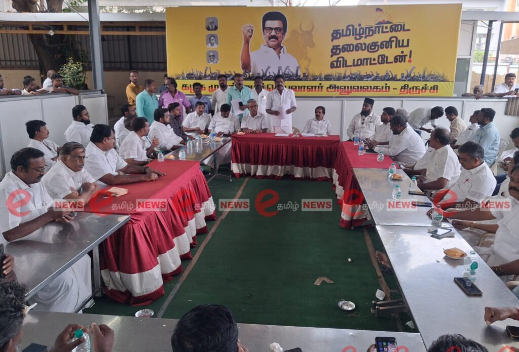திருச்சியில் நடைபெற்ற திமுக கூட்டணி கட்சிகள் ஆலோசனை கூட்டத்தில் தீர்மானம்