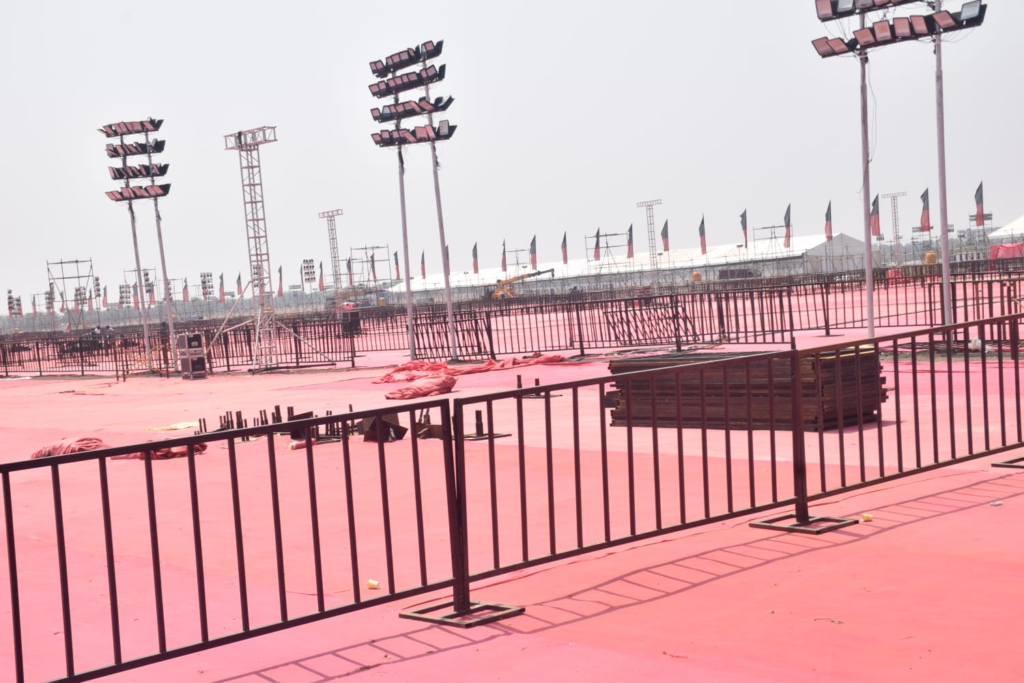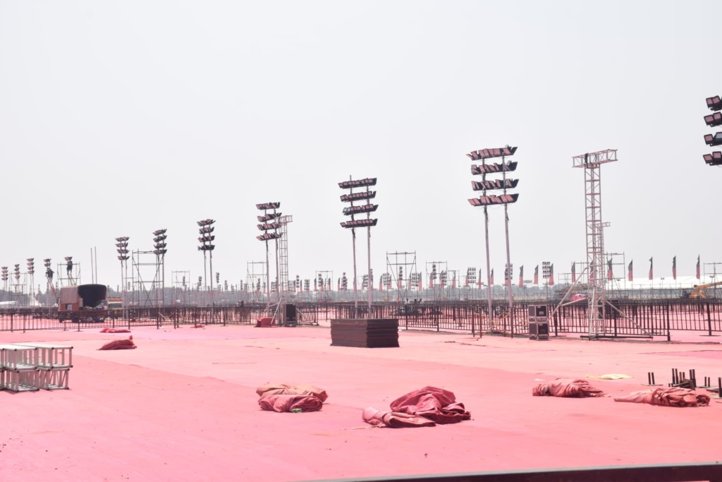 வாகனங்கள் நிறுத்துமிடத்துக்கு இடமும் தயார் செய்யப்பட்டு வருகிறது. தற்போது தொண்டர்கள் அமரும் பகுதி முழுவதும் இளஞ்சிவப்பு நிறத்தில் தரை விரிப்புகள் விரிக்கப்பட்டுள்ளன. இந்த மாநாட்டில் 10 லட்சம் பேர் பங்கேற்பார்கள் என்று எதிர்பார்க்கும் நிலையில், மொத்தம் 5 லட்சம் நாற்காலிகள் திடலில் போடப்பட உள்ளன.