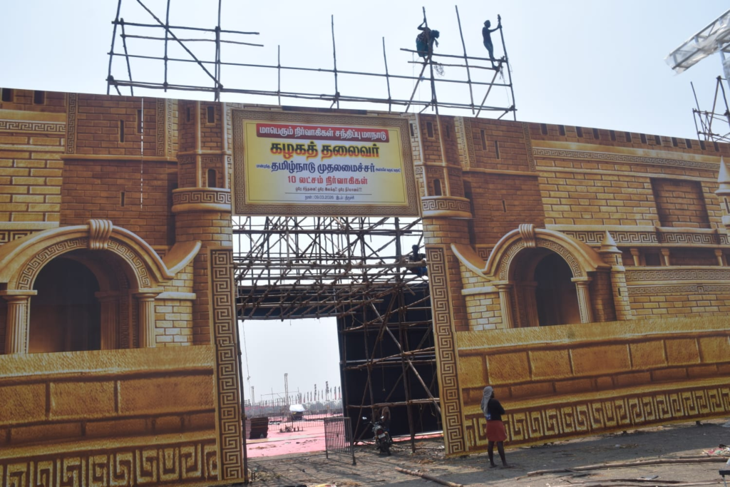 சட்டப்பேரவைத் தேர்தலை முன்னிட்டு ‘ஸ்டாலின் தொடரட்டும்- தமிழ்நாடு வெல்லட்டும்’ என்கிற தலைப்பில் திருச்சி மாவட்டம் சிறுகனூரில் மார்ச் 9-ந் தேதி திமுக மாநில மாநாடு நடைபெற உள்ளது. 2021-ம் ஆண்டு மாநாடு நடத்திய அதே இடத்திலேயே தற்போதும் நடைபெறுகிறது. திறந்தவெளி மாநாடாக நடைபெறும் இங்கு, தொண்டர்கள் அமர்வதற்கு 200 ஏக்கர் இடமும், 25 ஆயிரம்