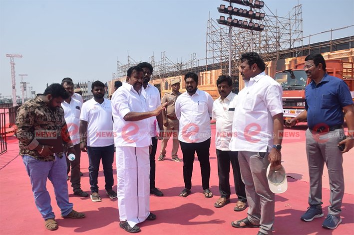 அமைச்சர் கே.என்.நேரு, கடந்த சில நாட்களாக மாநாடு நடக்கும் இடத்தில் முகாமிட்டு,பம்பரமாக சுழன்று பணிகளை விரைவுபடுத்தி வருகிறார்.