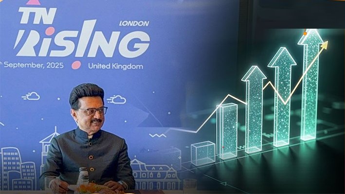 மில்லியன் ஆக இருந்து, 2024-25 இல் மில்லியனாக உயர்ந்துள்ளது. முக்கியத் துறைகள்: சேவைத் துறை , இரண்டாம் நிலை/தொழில்துறை , மற்றும் முதன்மைத் துறை ஆகியவை இந்த வளர்ச்சிக்கு பங்களித்துள்ளன. 14 ஆண்டுகளுக்குப் பிறகு, திமுக ஆட்சியில் தொடர்ந்து இருமுறை இரட்டை இலக்க பொருளாதார வளர்ச்சி எட்டப்பட்டுள்ளது என்பது குறிப்பிடத்தக்கது.