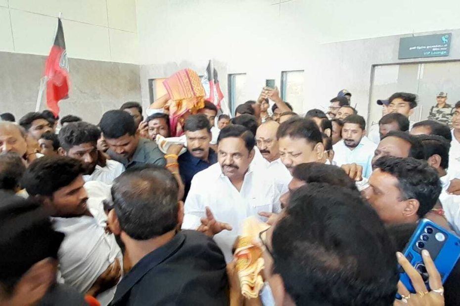 தமிழக முன்னாள் முதலமைச்சர், சட்டமன்ற எதிர்க்கட்சித் தலைவர், அதிமுக பொதுச்செயலாளர், எடப்பாடி.பழனிச்சாமி தஞ்சை, நாகப்பட்டினம் உள்ளிட்ட பகுதிகளில் நடைபெறும் பல்வேறு நிகழ்ச்சிகளில் பங்கேற்பதற்காக இன்று காலை சென்னையில் இருந்து விமானம் மூலம் திருச்சி வந்தார். திருச்சி வந்தடைந்த அவருக்கு, திருச்சி மாநகர் மற்றும் புறநகர் மாவட்ட கழகம் சார்பில் அதிமுகவினர் செண்டை மேள தாளங்கள் முழங்க, உற்சாக வரவேற்பு அளித்தனர். இதில், அதிமுக புறநகர் தெற்கு மாவட்ட கழக செயலாளர், முன்னாள் எம்பி குமார், புறநகர் வடக்கு மாவட்ட கழக செயலாளர், முன்னாள் அமைச்சர் பரஞ்சோதி, திருச்சி மாநகர் மாவட்ட கழக செயலாளர், முன்னாள் துணை மேயர் சீனிவாசன் ஆகியோர் தலைமையில் அதிமுகவினர் எடப்பாடி பழனிச்சாமிக்கு ஆளுயர மலர் மாலை அணிவித்தும், பொன்னாடை வழங்கியும், பூங்கொத்து கொடுத்தும், புத்தகங்கள் வழங்கியும் சிறப்பான வரவேற்பு அளித்தனர். இதில், முன்னாள் அமைச்சர்கள் விஜயபாஸ்கர், வளர்மதி, சிவபதி, அமைப்புச் செயலாளர் ரத்னவேல், முன்னாள் சட்டமன்ற உறுப்பினர்கள், முன்னாள் எம்.பி.கள் உள்ளிட்ட பலர் பங்கேற்றனர். அதனைத் தொடர்ந்து, சாலை வழி பயணமாக புறப்பட்டுச் சென்ற எடப்பாடி.பழனிச்சாமி, தஞ்சை மத்திய மாவட்டம் சார்பில் வல்லம் பிரிவு சாலையில் வரவேற்பு அளிக்கப்பட்டது. அதன் தொடர்ச்சியாக தஞ்சை மாவட்டத்தில் மன்னார்குடி ஒன்றிய பெருந்தலைவர் மனோகரன் இல்ல திருமண நிகழ்வில் பங்கேற்கிறார். அதனை தொடர்ந்து, நாகப்பட்டினம் மாவட்டத்தில் நடைபெறும் முன்னாள் அமைச்சர் ஜெயபால் இல்ல வரவேற்பு நிகழச்சி மற்றும் பல்வேறு கட்சிகளில் இருந்து வந்த நிர்வாகிகள் அதிமுக வில் இணையும் நிகழ்ச்சிகளில் பங்கேற்ற பின் இன்று மாலை மீண்டும் திருச்சி விமான நிலையம் வந்தடைந்து, விமானம் மூலம் சென்னை புறப்பட்டு செல்கிறார்.